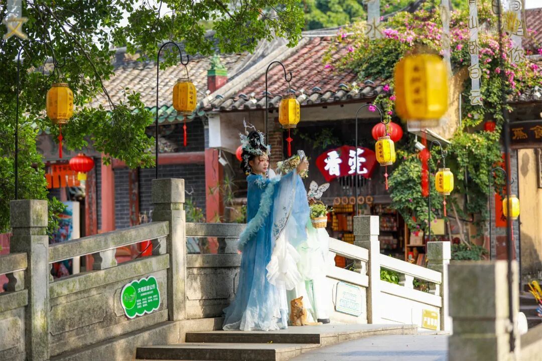 穿上汉服,在庆丰桥倒影前拍一张对称的古村水墨画,拍一套属于你自己的“穿越”艺术照;