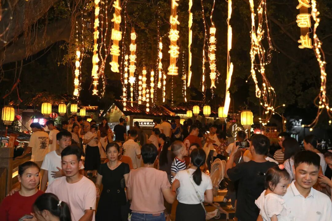 华灯初上,南社古村落灯笼渐次点亮,巷陌深处暖光盈盈。网红灯笼墙、梦幻步灯、网红炫彩树……各种光影打卡点让整个古村流光溢彩,如梦如幻。