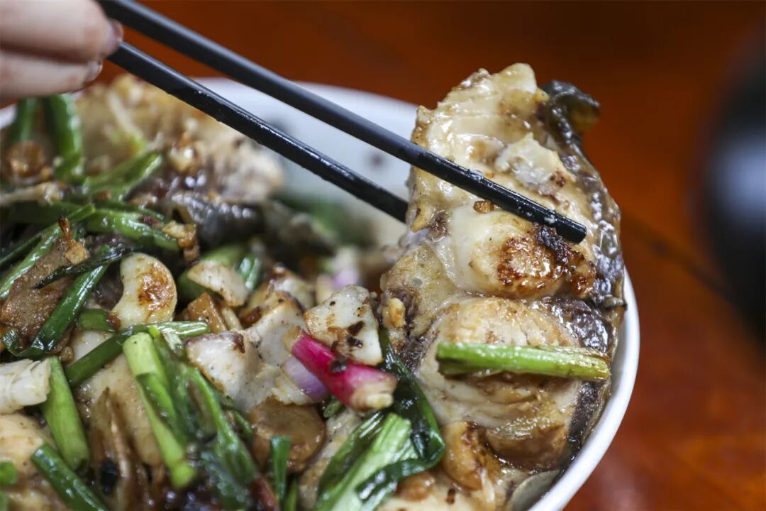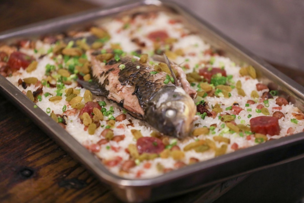 △建威将军饭:也就是鲤鱼炊饭。糯米和粘米混合,与鲤鱼、腊肉、腊肠、花生、红枣、葡萄干等一起蒸制。米饭吸着鲤鱼的脂香,满嘴肥美又不油腻。