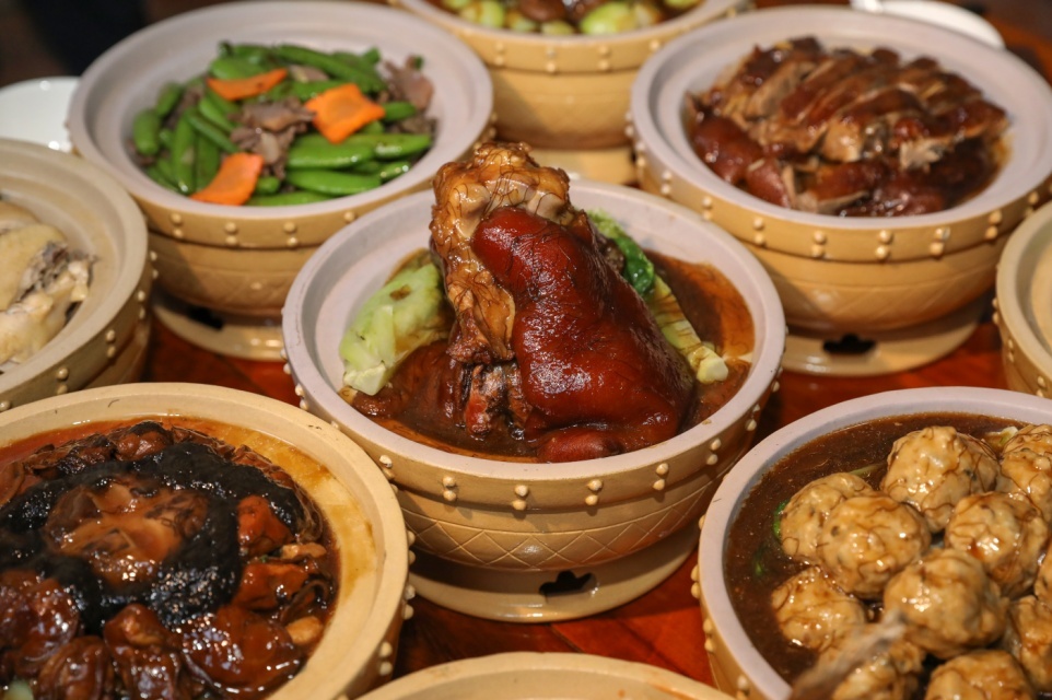 △南社九大簋:一共有九道菜,以“双鱼、双肉、双头牲”为荤,佐以时菜。双鱼,即用草鱼制作的松子鱼,用鲮鱼制作的鱼丸,双肉就是猪肉、猪脚,双头牲就是鸡和鹅。