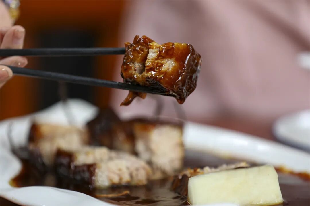 △进士及第肉:也称资政肉,选用黑毛猪肉,用高汤3小时慢火熬成,配以南社的莞草、秘制酱油,口味鲜美。