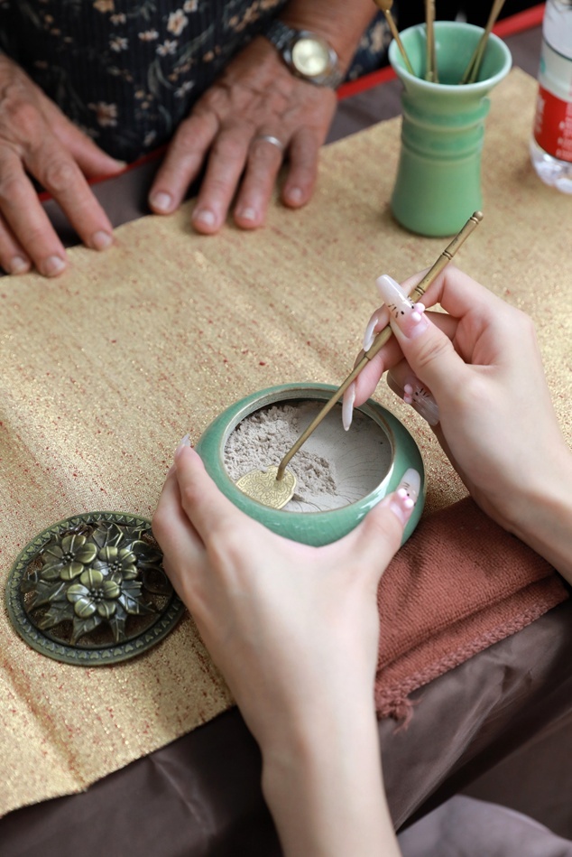 △莞香制作体验:循着一缕幽香,走进古宅里的「莞香馆」。在老师指引下,理灰、押香、篆刻、引燃。所有注意力都集中在眼前这方寸之间,看着青烟如云般从精致的香篆图案中袅袅升起,檀香与沉香的气息缓缓将自己包裹。